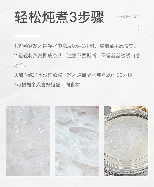 千百年來(lái),燕窩在人們心目中一直被視為養(yǎng)顏的滋補(bǔ)品。時(shí)至今日,燕窩是雨燕目雨燕科的部分雨燕和金絲燕屬的幾種金絲燕分泌出來(lái)的唾液,再混合其他物質(zhì)所筑成的巢穴。又稱燕菜、燕根、燕蔬菜,燕窩按筑巢的地方可分為“屋燕”及“洞燕”兩種,洞燕因其受礦物質(zhì)影響導(dǎo)致顏色不同,有白燕、黃燕、紅燕之分,而屋燕只有象牙白一種顏色。